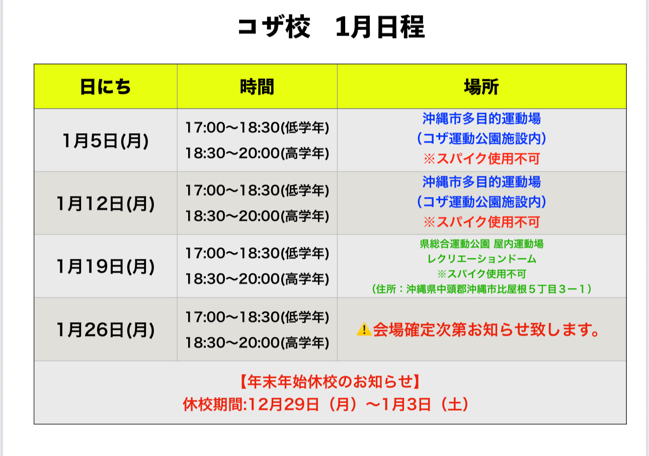 View Larger Image 沖縄地区 1月 スクール日程 ホームページ管理者2026-01-15T17:11:06+09:002025年12月30日|スクール日程_沖縄, スクール日程| 関連投稿 関東地区 1月 スクール日程 2025年12月30日 | 0 コメント 関西地区 1月 スクール日程 2025年12月30日 | 0 コメント 徳島地区 1月 スクール日程 2025年12月23日 | 0 コメント